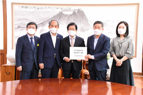 [충청뉴스큐] 더불어민주당 탄소중립특별위원회는 금일 박병석 국회의장실을 방문해 2050년 탄소중립국회를 마련하기 위한 단기·중장기 실천방안을 제안했다.