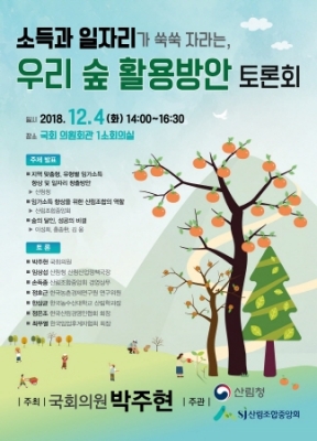 [충청뉴스큐] 산림청은 4일 국회 의원회관 1소회의실에서 숲을 활용해 임가소득을 올리고 일자리 창출 방안을 모색하기 위해 '우리 숲 활용방안 토론회'를 개최했다고 밝혔다.