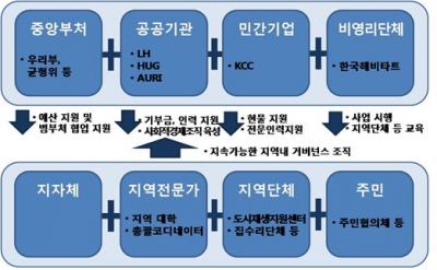 민관협력형 노후주택 개선사업: 정부·기업·공공기관·NPO 등이 주민과 함께 도시 취약지역 내 노후주택을 정비하고, 사회적 경제조직을 육성하는 사업