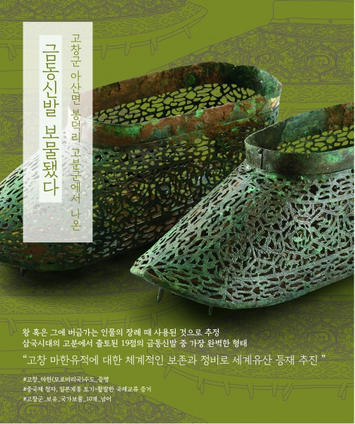보물 ‘고창 봉덕리 1호분 출토 금동신발’과 ‘나주 정촌고분 출토 금동신발’ 2종은 국내 최초 원형 그대로 발굴된 유물이라는 점에서 고고학과 역사적으로 의미가 크다.