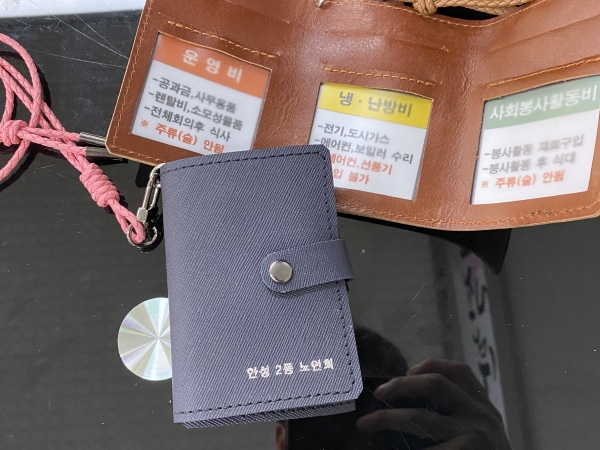 지속적으로 발생하고 있는 보조금의 잘못된 사용 문제를 해결하기 위해 제작된 카드지갑은 경로당에 지급되는 운영비, 냉·난방비, 사회봉사활동비 전용으로 각 보조금의 사용가능 범위가 기재되어있으며 어르신들이 구분하기 쉽도록 각 보조금 카드집에 색상 스티커를 부착해 편의를 더했다.