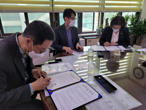 [충청뉴스큐] 수원시와 수원시의회, KT링커스는 22일 시청 환경국장 집무실에서 ‘배터리 교환형 전기이륜차 보급·이용 활성화를 위한 업무협약’을 체결하고 배달용 전기이륜차 충전인프라 구축에 협력하기로 했다.
