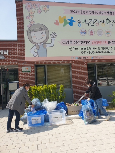 [충청뉴스큐] 당진시보건소 송악건강생활지원센터는 지난 22일 지구의 날을 맞아 건강자치동아리, 지역주민들과 함께 지난 19일부터 23일까지 송악읍 복운리 일대를 걸으며 쓰레기 줍기 등 ‘지구지키기’ 행사를 진행했다.