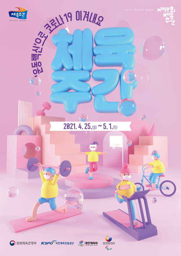 59번째를 맞이하는 올해 체육주간에는 “‘운동백신’으로 코로나19 이겨내요”라는 표어 아래, 코로나19 상황 속에서도 국민의 건강과 활력을 높이기 위해 대규모 집합행사는 지양하고 일상 속 개인·비대면 체육활동 참여를 독려한다.