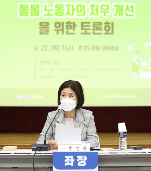 [충청뉴스큐] 왕성옥 경기도의원이 좌장을 맡은‘돌봄 노동자의 처우 개선을 위한 토론회’가 지난 22일 오후 2시 경기도의회 대회의실에서 열렸다.