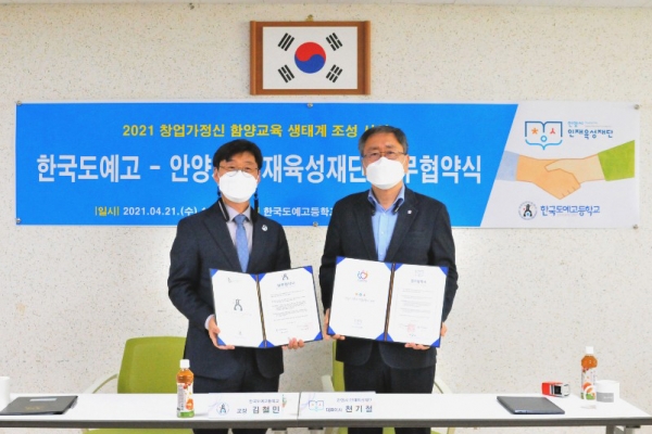 [충청뉴스큐] 안양시 인재육성재단이 4월 21일 경기도 이천에 소재한 한국도예고등학교와 업무협약을 맺어 학생들의 창업가 정신과 창업능력을 높이는데 힘을 모으기로 했다.