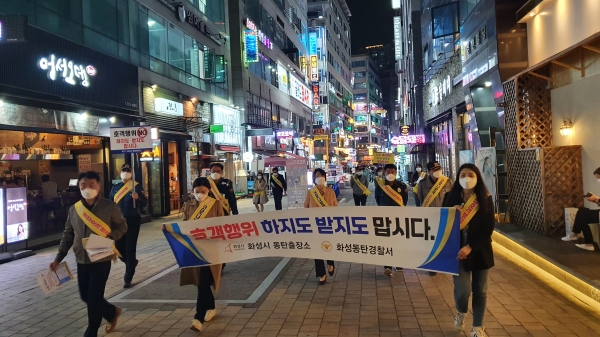 한편 화성시 동탄출장소는 22일 화성동탄경찰서와 동탄 남광장 및 북광장에서 불법호객행위 근절을 위한 합동 캠페인을 실시했다고 밝혔다.