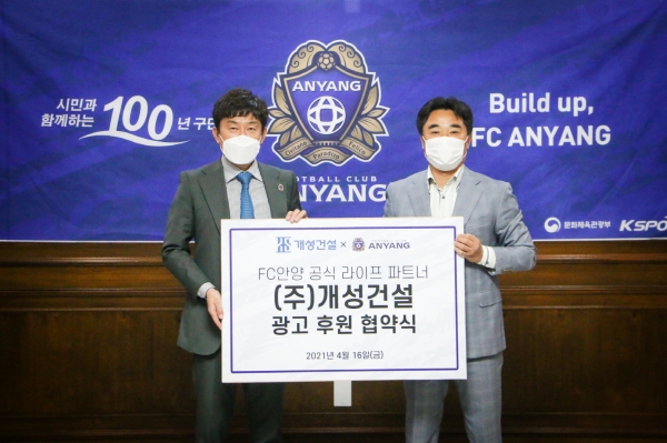 지난 2019년부터 FC안양과 함께한 ㈜개성건설은 이번 후원 협약을 통해 FC안양의 공식 후원사로서의 지위를 2021년까지 연장한다.