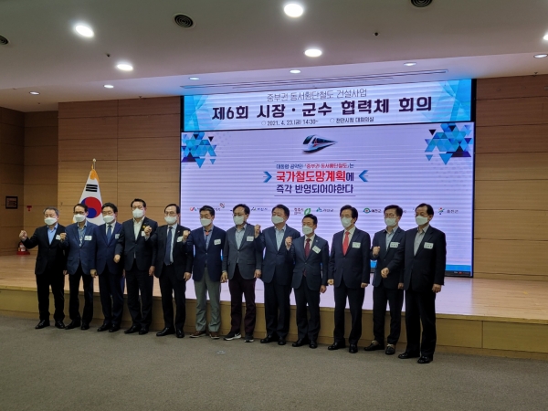 이날 회의에 참석한 12개 자치단체 시장·군수는 중부권 동서횡단철도 건설과 관련한 그간의 추진상황을 점검하고 제4차 국가철도망 구축계획 반영을 위한 향후 공동 대응방안을 위한 대책을 논의했다.