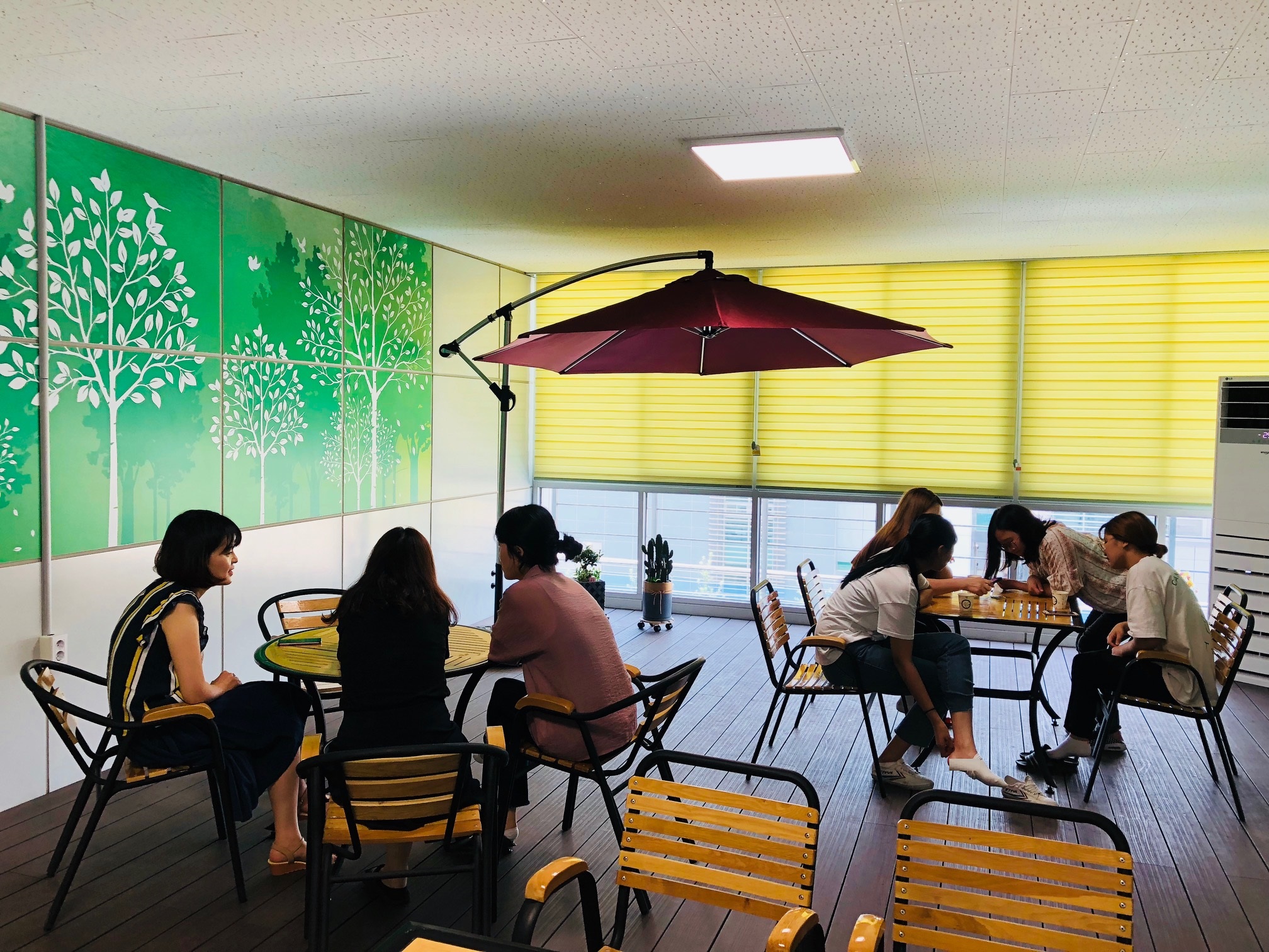 기존 3층 테라스 공간(규모 약55㎡)에 리모델링 공사를 통해 안락하고 편안한 분위기의 카페테리아를 마련해 업무에 지친 직원들이 잠시 들러 차를 마시며 휴식을 취할 수 있도록 했다.