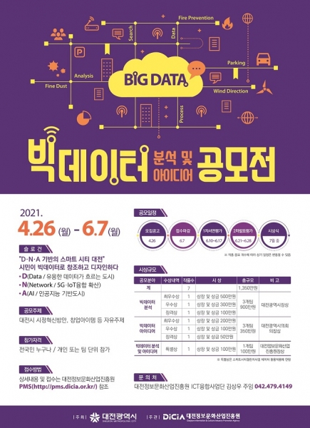 [충청뉴스큐] 대전시와 대전정보문화산업진흥원은 ‘2021 빅데이터 분석 및 아이디어 공모전’을 개최한다고 26일 밝혔다.