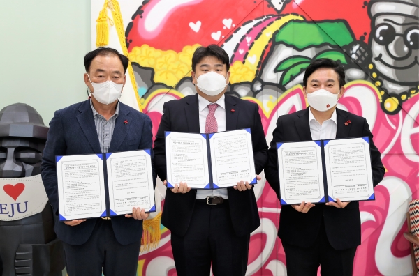 제주도와 ㈜네오플, 제주사회복지공동모금회는 26일 제주도청 집무실에서 ‘제2차 디딤씨앗통장 적립 후원 협약식’을 개최했다.