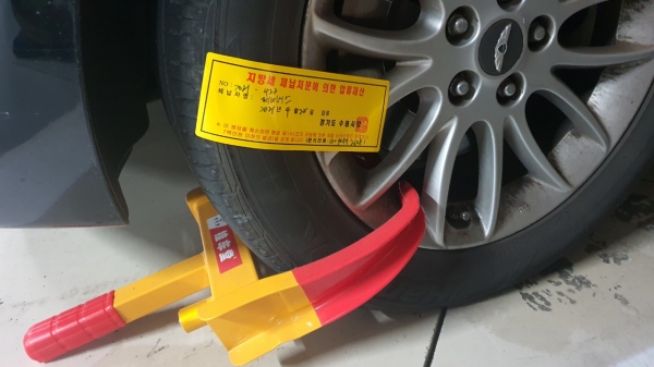 담당 직원이 예고 없이 ‘대포차 점유자’ 거주지로 찾아가 주차된 차량 바퀴에 족쇄를 채우고 ‘지방세 체납처분에 의한 압류재산’이라는 문구와 단속 담당자 연락처가 적힌 노란 스티커를 붙여놓는다.