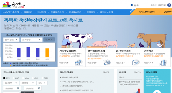 축사로는 가축 사육부터 출하 후 관리까지 농장의 기록 정보를 관리할 수 있는 전산 프로그램이다.