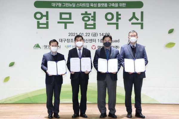 이에 더해 대구시는 지난 1월 체결된 ‘대구형 그린뉴딜 스타트업 육성 플랫폼 구축’ 업무협약의 일환으로 대구시와 대성그룹이 공동출자한 ‘대구형 그린뉴딜 펀드’를 통해 투자유치를 지원할 예정이다.