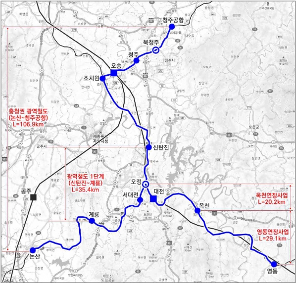 기 발표된 제4차 충청북도 종합계획의 철도 및 항공체계 구축분야에도 오정역~대전역~옥천역~영동역 구간까지 계획됐다.