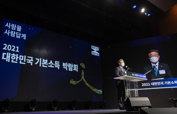 이재명 지사는 28일 개막한 2021 대한민국 기본소득박람회 개회사에서 “코로나19로 인류가 맞이한 극한의 상황은 역설적으로 기본소득에 대한 확신을 강화하는 계기가 되고 있다”며 이같이 밝혔다.