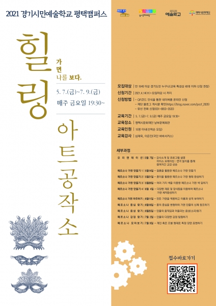 [충청뉴스큐] 평택시문화재단이 경기도와 경기문화재단에서 주최하는 ‘2021 경기시민예술학교’ 공모에 선정되어 5월부터 ‘경기시민예술학교 평택캠퍼스_힐링 아트공작소’라는 이름으로 시·도민분들과 함께하는 교육 프로그램을 진행한다고 밝혔다.