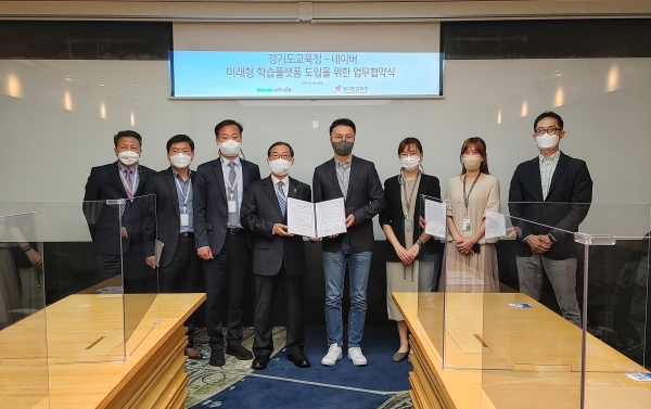 [충청뉴스큐] 경기도교육청은 28일 성남시 분당구 네이버 사옥 그린팩토리에서 네이버와 미래형 학습 플랫폼 ‘웨일 스페이스’ 도입을 위한 업무협약을 맺었다.