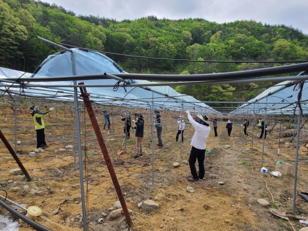 최근에는 농정과 직원 14명이 용화면 월전리 소재 고령 농가의 포도밭을 찾아, 과원 정리를 하며 소통의 시간을 가졌다.
