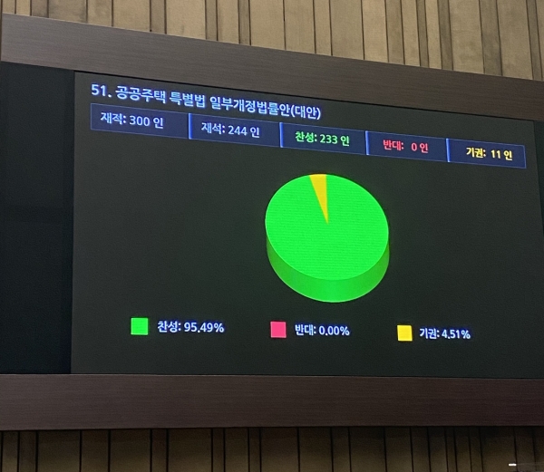 29일 국회는 본회의를 개최해 김은혜 의원이 대표발의한 ‘공공주택특별법’일부개정법률안을 가결했다.