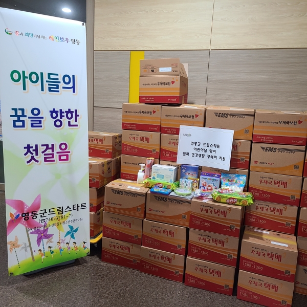 특히 건강생활 꾸러미는 2019년부터 영동군 드림스타트에 정기적 후원을 하고 있는 육군종합행정학교의 김장근 소령과 영동읍 이츠마트의 후원으로 더욱더 알찬 꾸러미로 구성을 했다.