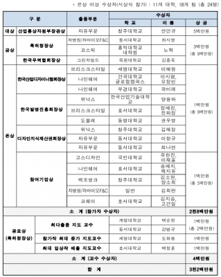 올해 시상식의 대상인 산업통상자원부장관상에는 청주대학교 안민규 학생이 수상자로 선정됐다.