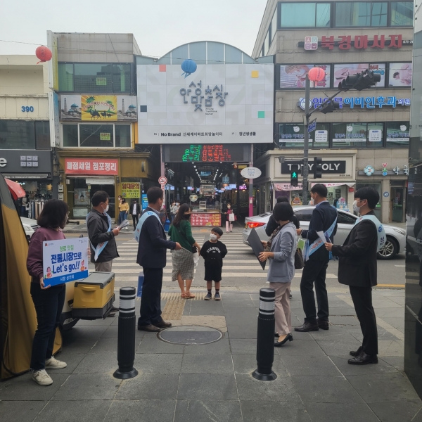이날 일자리경제과는 청렴도 향상 정책의 일환으로 청렴 어깨띠와 청렴 판넬을 준비해 범시민적 청렴의식 확산을 위한 청렴 캠페인을 안성맞춤시장상인회와 함께 실시했다.