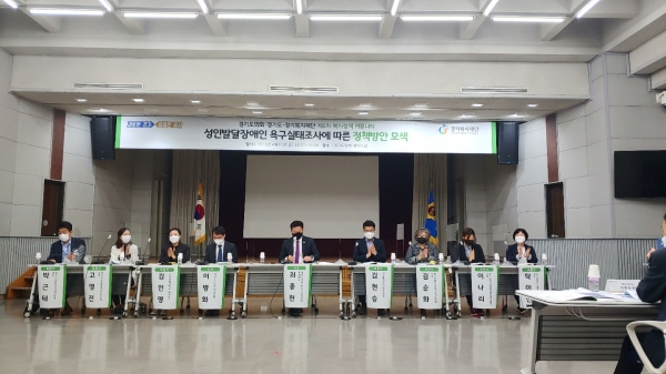 토론회에는 이병우 경기도 복지국장, 진석범 경기복지재단 대표이사, 발달장애인 관련 단체, 서울시립대 김민영 교수, 배수문·이애형 도의원 등이 참여했다.