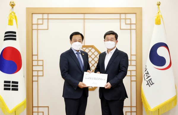 장현국 의장은 이날 오후 정부세종2청사 마중물터에서 전해철 장관에게 의회가 자체적으로 마련한 ‘자치분권 시대, 지방의회 역량 강화를 위한 경기도의회 현안 및 제도개선 사항’ 건의서를 직접 전달하고 2022년 본격 시행을 앞둔 ‘지방자치법 전부개정안’의 원활한 지역사회 정착 및 추진방안을 중심으로 이야기를 나눴다.