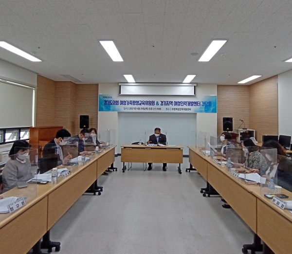 [충청뉴스큐] 경기도의회 여성가족평생교육위원회는 지난 4월 29일 오후 3시 수원여성인력개발센터를 방문해, 코로나19에 대응해 여성 경력단절 예방과 재취업을 지원하고 있는 도내 여성인력개발센터 관장단과 소통정담회를 개최하고 상호이해를 촉진하는 시간을 가졌다.