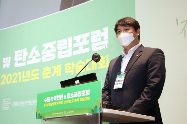 조석환 의장은 환영사를 통해 “수원시가 탄소중립 사회로 전환하기 위한 첫걸음을 알리는 뜻깊은 행사”며 “수원시의회도 지방자치단체 주도의 2050 탄소중립 달성을 위해 보다 많은 관심과 노력을 기울이고 관련 조례 제정이나 예산도 적극 지원해 나가겠다”고 전했다.