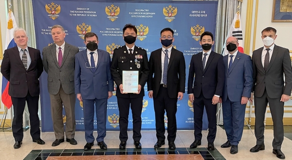 이에 주한 러시아 대사관 안드레이 쿨릭 대사가 서영호 경위를 초청해 이날 영웅메달을 수여했다.