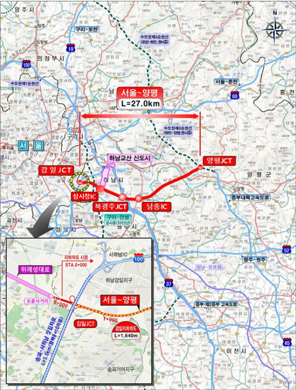 ‘서울~양평 고속도로 건설사업’은 하남시 감일동에서 광주시를 거쳐 양평군 양서면을 잇는 총 연장 27㎞ 규모의 왕복 4차로 고속도로를 건설하는 것으로 그간 경기 동남부 도민들의 숙원사업이었다.