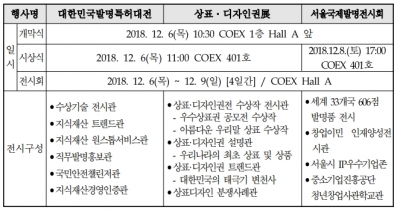 대한민국 지식재산대전은 "대한민국 발명특허대전"과 "서울국제발명전시회", "상표·디자인권전"이 통합 개최되는 국내 최대 지식재산권 전시회다. 본 행사는 특허·디자인·상표 등 우수 지식재산의 유통을 촉진하고 지식재산에 대한 국민의 인식을 높이고자 마련됐다.