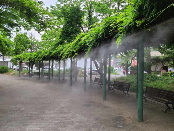 아울러 분무된 물이 더운 공기와 만나 미세먼지를 흡착하고 주위 온도를 3~5도 가량 낮추는 효과가 있어 미세먼지 저감은 물론 폭염에 취약한 어린이와 지역 어르신들의 폭염 피해를 덜어줄 것으로 예상된다.