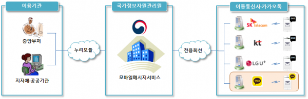 모바일 메시지 서비스는 행정기관이 국민에게 정보를 알리고자 할 때 보다 쉽고 편하게 할 수 있도록 국가정보자원관리원에서 구축·운영하는 이동통신 기반서비스이다.