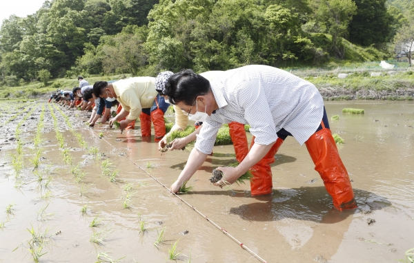이날 모내기에 참석한 이차영 괴산군수는 “올해도 대풍년을 기원한다”며 “전국 최고 품질의 쌀이 생산될 수 있도록 적극 힘써달라”고 당부했다.