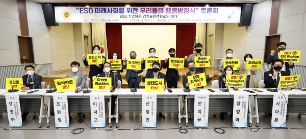 이 날 토론회에는 경기도의회 장현국 의장과 김경호 의원을 비롯해 홍성국 국회의원, 신윤관 한국지속가능발전센터 이사 등이 참석해 축하 인사를 전했으며좌장인 신정현 의원의 사회를 시작으로 안치용 ESG연구소 소장의 주제발표와 조현철, 이덕근, 장정화, 김종하, 서아론이 토론자로 나서 활발한 토론을 진행했다.