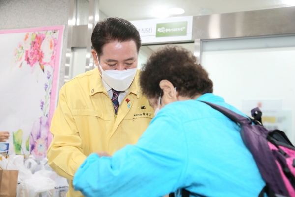 10일 최대호 안양시장은 무료경로식당 중 한 곳인 만안종합사회복지관을 방문해 선물과 특별식을 전달하며“정성껏 준비한 식사 맛있게 드시고 건강하게 오래 오래 사세요.”며 어르신들의 건강을 기원했다.