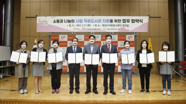 [충청뉴스큐] 화성시는 11일 화성시 자원봉사센터, 지역 거점 작은도서관과 협력해 사립 작은 도서관 운영 활성화를 지원하기 위한 업무 협약을 체결했다.