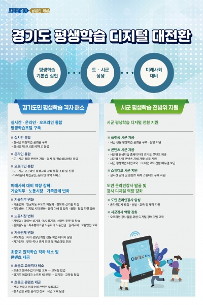 또, 각 시군별로 디지털 평생학습이 가능한 전용 플랫폼을 구축할 수 있도록 지원하고 경기도가 제작한 온라인교육 콘텐츠도 제공한다.