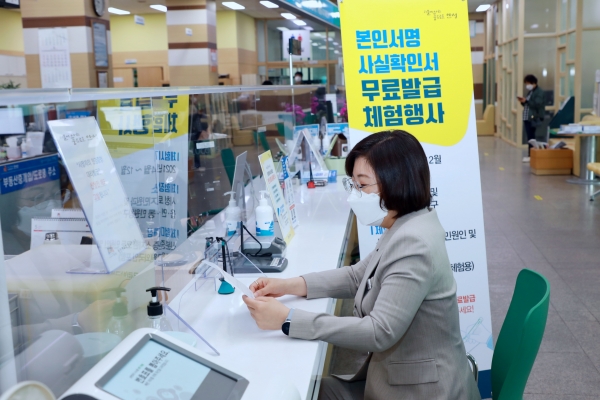 그러나 본인서명사실확인서의 다양한 장점에도 제도 인식부족으로 상용화되지 못하고 있어, 시에서는 이를 개선하고자 지난달부터 공무원 및 방문 민원인 등을 대상으로 본인서명사실확인서 무료발급 체험 서비스를 제공하고 있다.