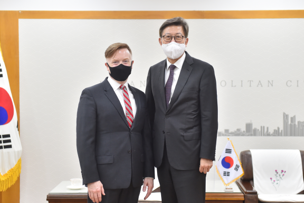 박형준 시장은 주부산미국영사를 만나 먼저 취임 축하를 위해 방문해 준 것에 대해 감사 인사를 전했다.