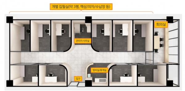 경기 스토리작가 하우스는 전용면적 167.9㎡ 규모로 작가 개별 집필 공간 10실, 회의실, 사무공간 등으로 구성됐다.