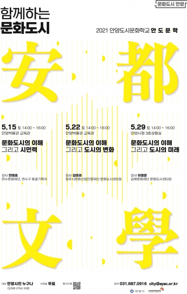 [충청뉴스큐] ‘문화도시’선정을 추진하는 안양시가 시민 문화도시 마인드 함양을 위한 ‘안·도·문·학’을 개설, 15·22·29일 세 차례 운영한다고 13일 밝혔다.