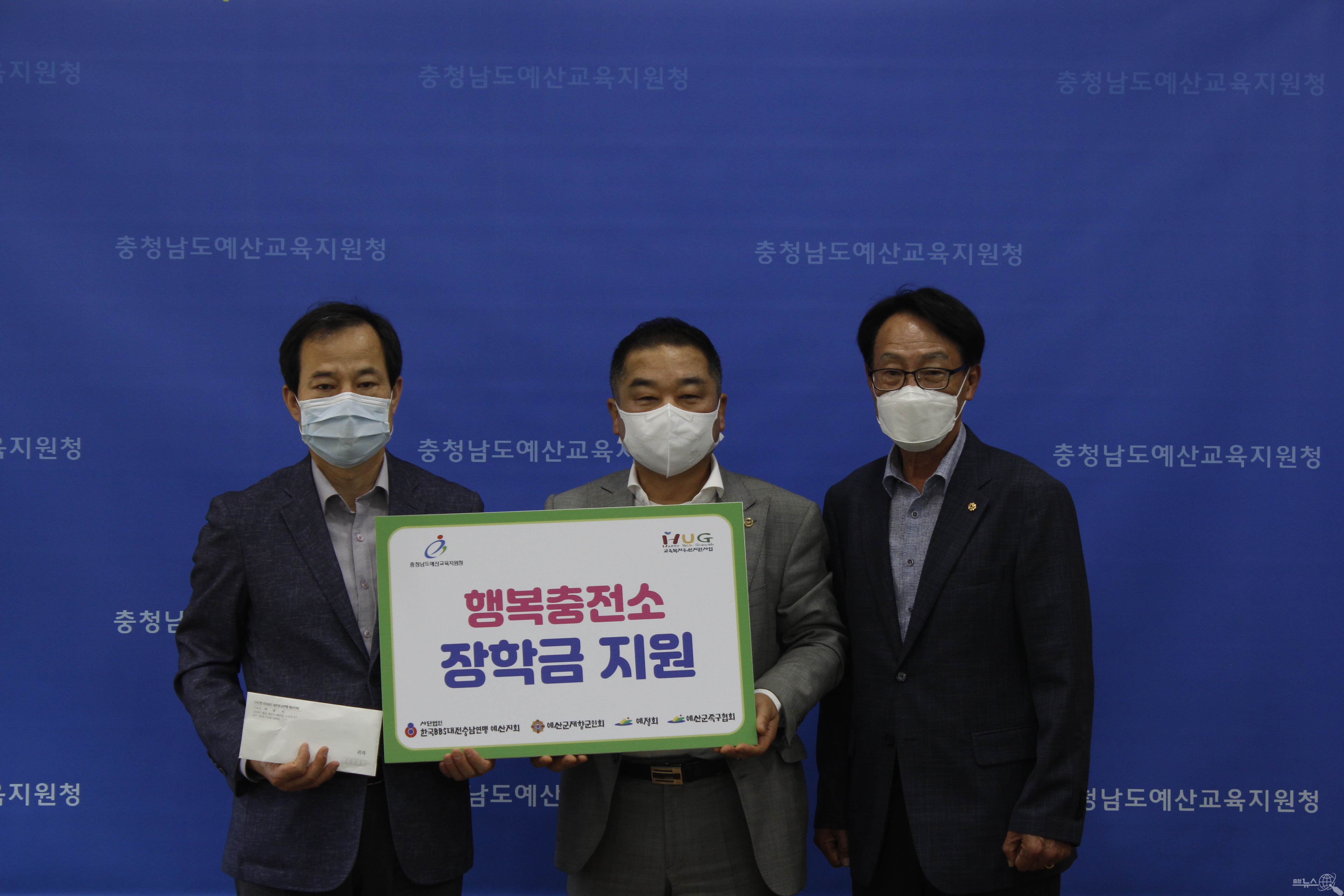 예산교육지원청 ( 안성호 교육장)교육복지지원센터는 13일 (사)한국BBS대전충남연맹예산지회, 예정회, 예산군재향군인회, 예산군족구협회로부터 취약계층 학생을 위한 장학금을 전달 받았다“고 밝혔다.