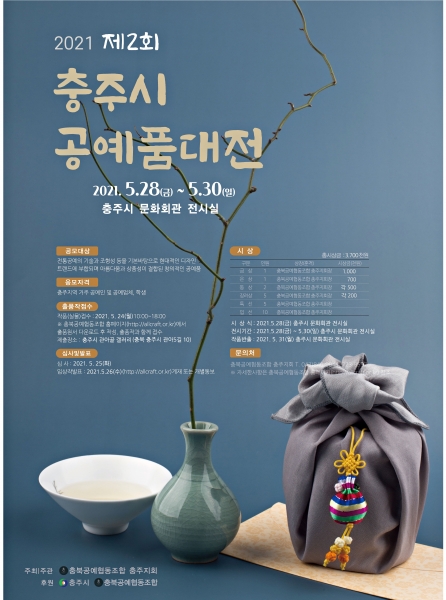 출품작 원서는 오는 24일까지 충북공예협동조합 홈페이지‘공모전’페이지에서 출품원서를 다운로드 후 작성해 출품작과 함께 접수하면 된다.