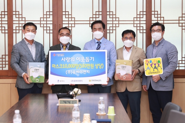 [충청뉴스큐] ㈜유비이엔지는 지난 13일 평택시청 대외협력실에서 코로나19 감염 및 재확산방지를 위해 마스크 1만장을 기탁했다.