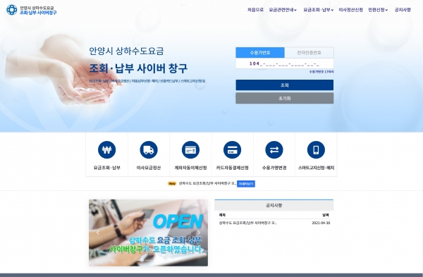 [충청뉴스큐] 안양시가 상하수도요금 조회·납부 홈페이지를 새롭게 개편, 시민들은 더욱 편리하게 요금을 납부 할 수 있게 됐다.